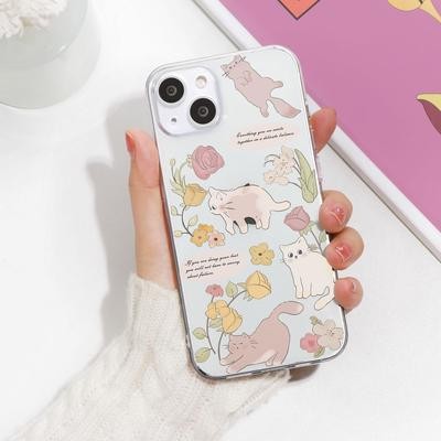 титульная страница > Электронная продукция > Арт Линия Цветок Симпатичный Кот Прозрачный Чехол для телефона для iPhone 14 Plus 13 12 11 X XR XS S