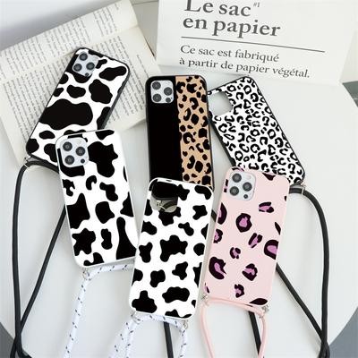 Ожерелье Ремешок Веревка Чехол для Xiaomi Redmi Note 10 9 8 Mi 11 Lite Мягкий TPU Леопардовое покрыт