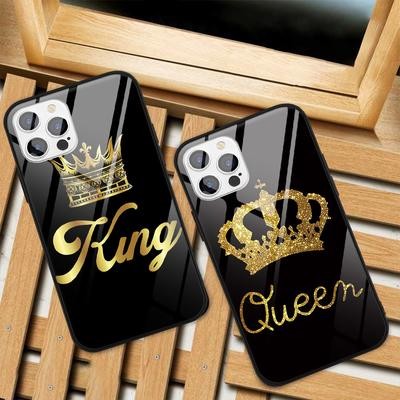 Король и королева Корона Пара Жесткий закаленный стеклянный чехол для телефона для iPhone SE 2022 13
