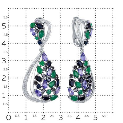 титульная страница > Ювелирные изделия > Серьги из белого золота с подвесками Vesna jewelry 21177-251-203-00 с изумрудами, сапфирами, танзани