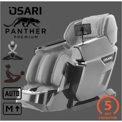 Массажное кресло Osari Pantera класса LUXE c 4D массажем и функционалом самого последнего поколения.Одно из лучших массажных кресел в России по отзывам клиентов!ОБЩЕЕ ОПИСАНИЕКресло Osari Pantera оснащено новейшей 4D роликовой массажной кареткой с воздушно-компрессионными подушками (60 слотов) для лимфодренажного массажа, равномерно распределёнными по всей массажной поверхности. Многофункциональная автоматическая массажная подножка обеспечивает максимально детальный массаж ногКресло полностью русифицировано. Для удобства управления имеет 7 дюймовый интуитивно понятный и информативный дисплей с насыщенным функционаломДля изготовления массажного кресла используются экологичные материалы LUXE класса, высокие стандарты качества обеспечивают износостойкость, долговечность и простоту в уходеСОВРЕМЕННАЯ СИСТЕМА 4D МАССАЖАРоликовый 4D массаж на сегодняшний день является передовой технологией в сегменте LUXE. Широкий диапазон возможностей роликовой массажной каретки кресла Osari Pantera позволяет получить максимально возможный охват и глубину проработки мышц.Самая высокая массажная каретка в России SL 145 см обеспечивает глубокую проработку тела от верхней части шеи до бедер и ягодицДЕТАЛЬНОЕ СКАНИРОВАНИЕ ТЕЛАМассажное кресло Osari Pantera осуществляет полное сканирование тела: адаптация кресла под рост, вес и конституционное строение человека.Встроенный “Миотонограф” (система определения тонуса мышц) позволит адаптироваться массажерам под ваше текущее физическое и эмоциональное состояние.После включения кресла не отрывайте тело от поверхности массажного кресла, дождитесь завершения сканирования9 МАССАЖНЫХ ТЕХНИК Функционал массажного кресла позволяет одновременно наслаждаться девятью техниками массажа одновременно: шиацу, лимфодренажный, похлопывание, растягивание, роллинг массаж, вибрация, точечный, разминание, скручивание24 АВТОМАТИЧЕСКИЕ ПРОГРАММЫ (8 класических,8 индивидуальных,8 по зонам)Автоматические программы задействуют популярнейшие техники массажа:В любое время можно проработать все группы мышц до полного расслабления, улучшить кровообращение, снять напряжение и снизить стрессПримеры режимов: вечерний, успокаивающий, антистресс.После продолжительного сна или монотонной работы не требующей физической активности с помощью специализированных режимов вы можете привести мышцы в тонус и получить заряд энергии. Примеры режимов: растяжка, тонизирующий, восстановление, утреннийШирокая база персонализированных программ в массажном кресле Osari Pantera позволяет в один клик выбрать режим, адаптированный под ваш образ жизни. Примеры режимов: директор, домохозяйка, автолюбитель, менеджер, спортсмен Конфигуративные настройки - каждый режим имеет персональные дополнения: изменения уровня силы, интенсивности, позиции. Продолжительность режимов 15 минут с возможностью изменения от 5 до 30 минут (шаг 5 минут)РУЧНОЕ УПРАВЛЕНИЕВозможности ручного управления позволяют использовать массажное кресло Osari Pantera для решения локальных проблем в определенных участках тела, открывая бесконечные возможности: точечная настройка зоны массажа, выбор желаемой техники массажа или нескольких, персональная регулировка интенсивности и силы воздействия массажеров, выбор удобного положения кресла и массажной подножки, сохранение заданных парамет